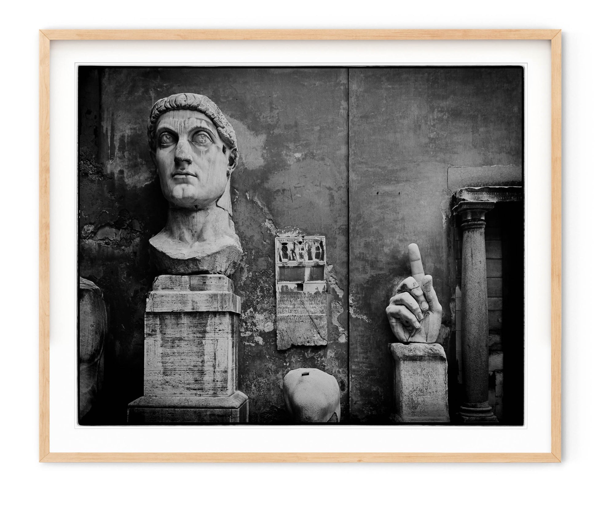 Description: Ancient Roman sculptures adorn the courtyard at Capitoline Museum courtyard. Shot on film with film edge visible.