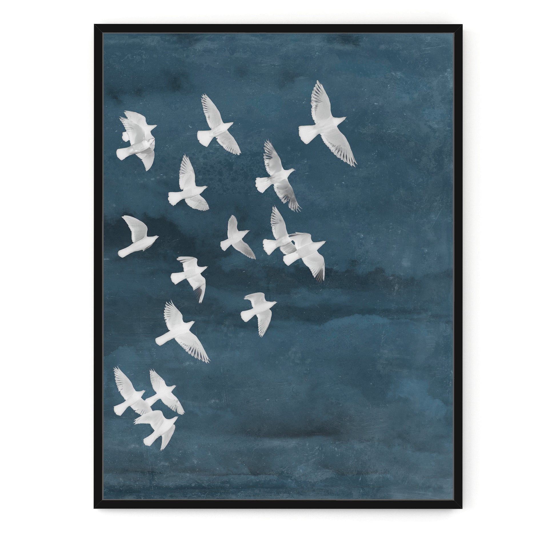 Description: Pair of images of of birds in flight, each piece sold individually. Created using collage and hand painted elements combined with digital photography.