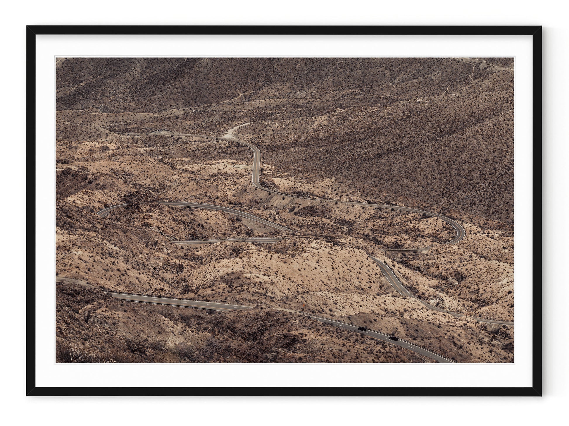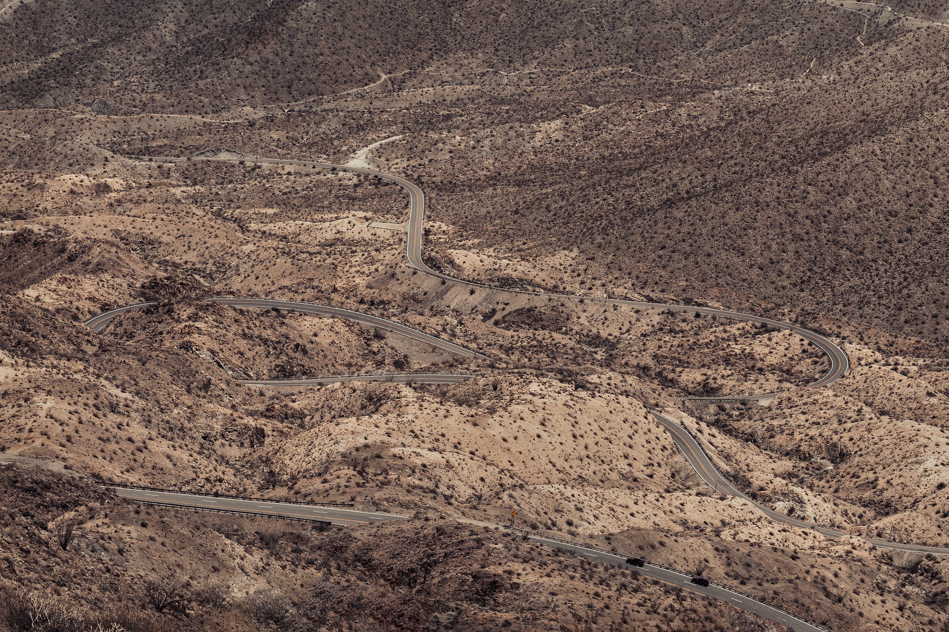 Description: Curvy desert highway near Palm Springs, California.